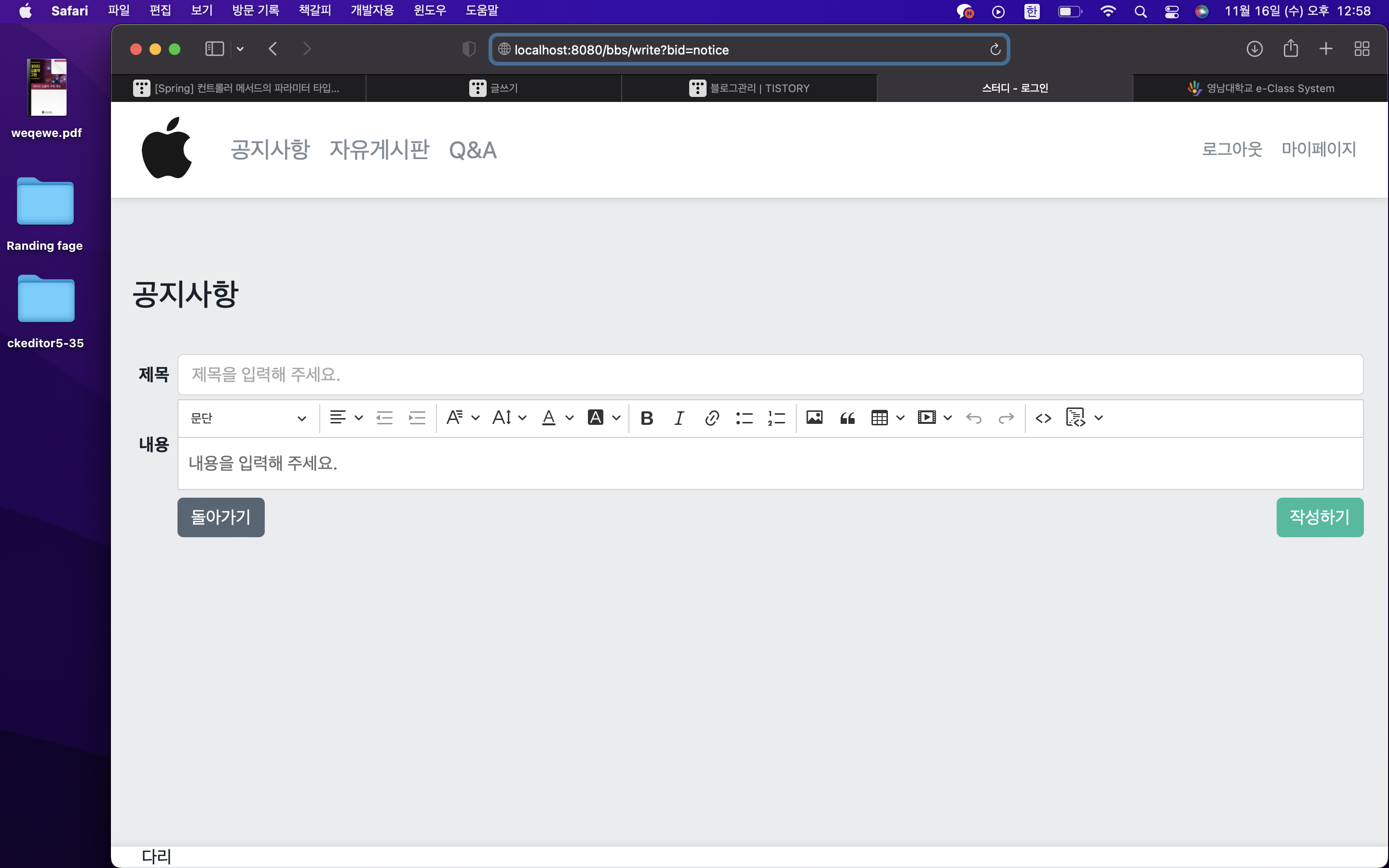 | [Spring Boot] 게시판 만들기 (0) | 2022.11.15 |